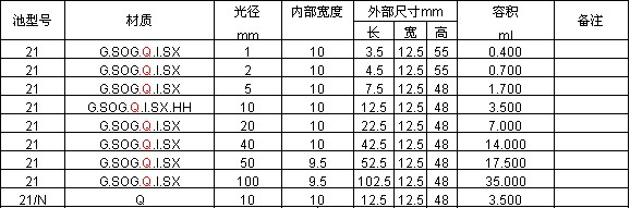 帶有螺紋蓋(帶或不帶隔膜)的標(biāo)準(zhǔn)方形池 Type 1、9、18/GL14