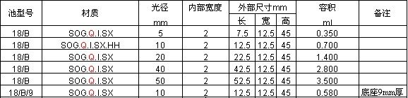 帶防水密封塞亞微量方形池,體積:10ul-160ul,Type 16R