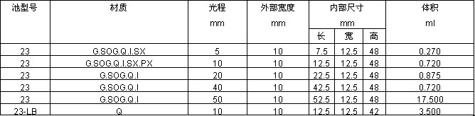 敞口微量熒光池Type 3-和帶塞子微量熒光池Type 23-