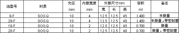 半微量熒光池Type 9-F和29-F,微量熒光池Type 18-F和Type 28-F