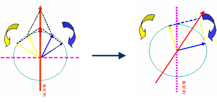振幅相等、角頻率相等、相位不同,左右圓偏振光合成線性偏振光