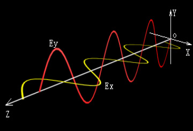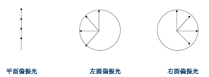 2、圓偏振光:對著光前進的方向觀察時,一束光波的電場矢量(或磁場矢量)端點在空間的軌跡是以光傳播方向為軸的圓形螺旋(在平面上的投影為圓形)。電矢量方向沿逆時針方向旋轉(zhuǎn),稱為左圓偏振光;電矢量方向沿順時針方向旋轉(zhuǎn),稱為右圓偏振光。