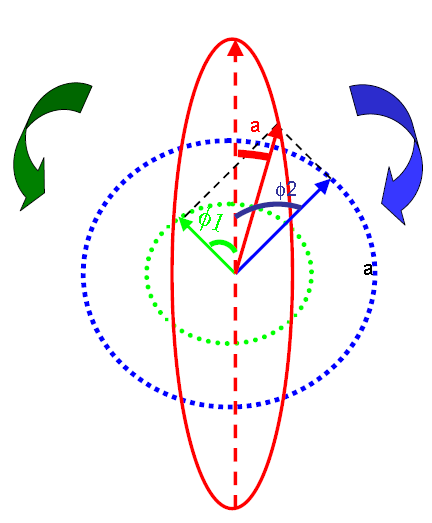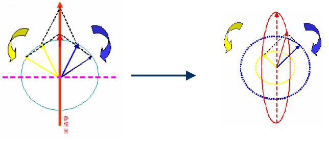 振幅不相等、角頻率相等,左右圓偏振光合成橢圓偏振光