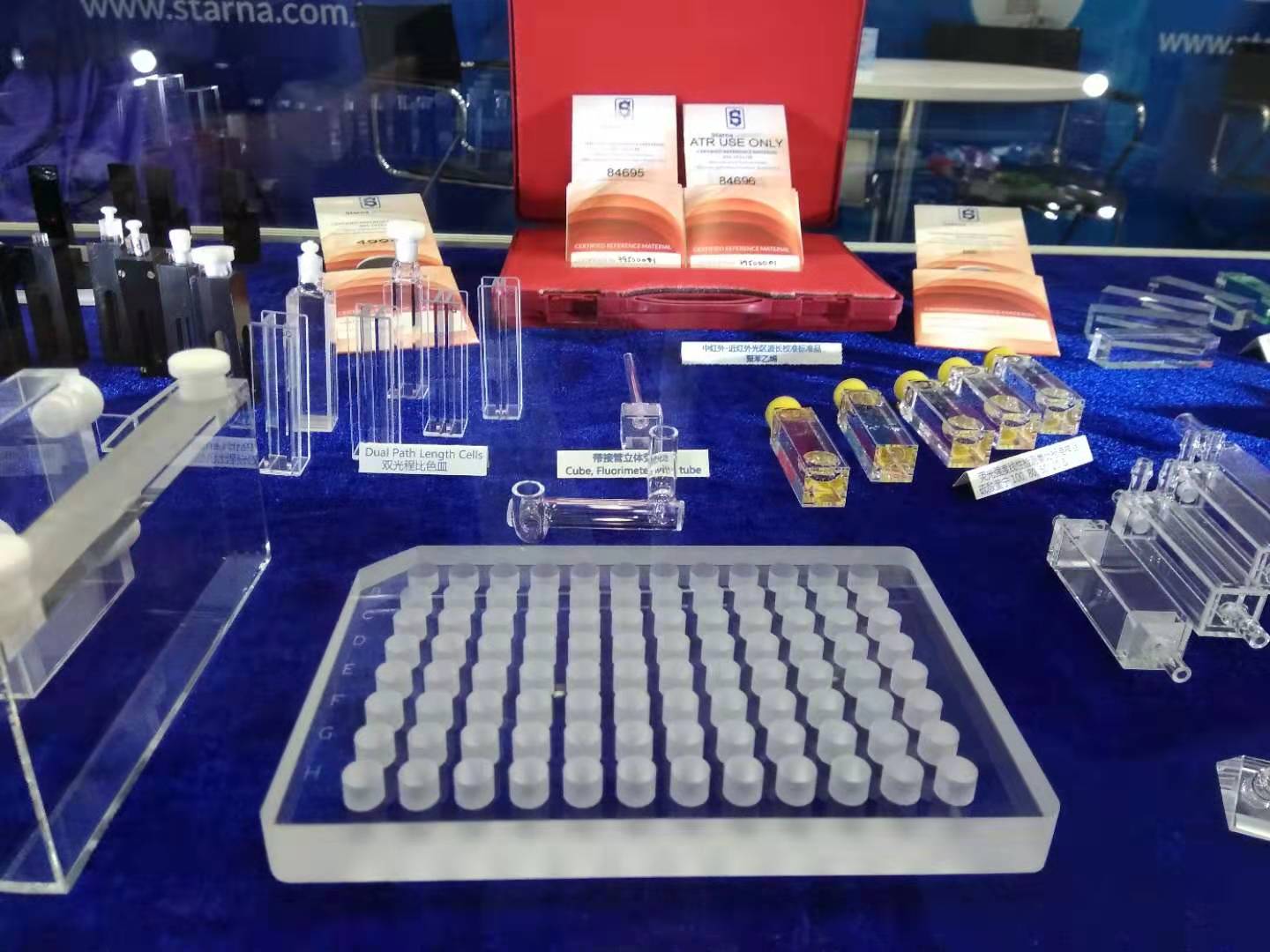 英國Starna攜最新的熒光標(biāo)準(zhǔn)物質(zhì)及超微量生物樣品池、石英96孔板等產(chǎn)品出席了此次盛會,同時,在會上展出了適用于各種光譜儀器應(yīng)用的比色皿和認(rèn)證標(biāo)準(zhǔn)品。Starna可為您的光譜儀器應(yīng)用及認(rèn)證提供完整的解決方案。種類繁多的適合不同應(yīng)用的各種產(chǎn)品,總有一款適合您的應(yīng)用,同時還可以為客戶提供專業(yè)的定制設(shè)計服務(wù)。