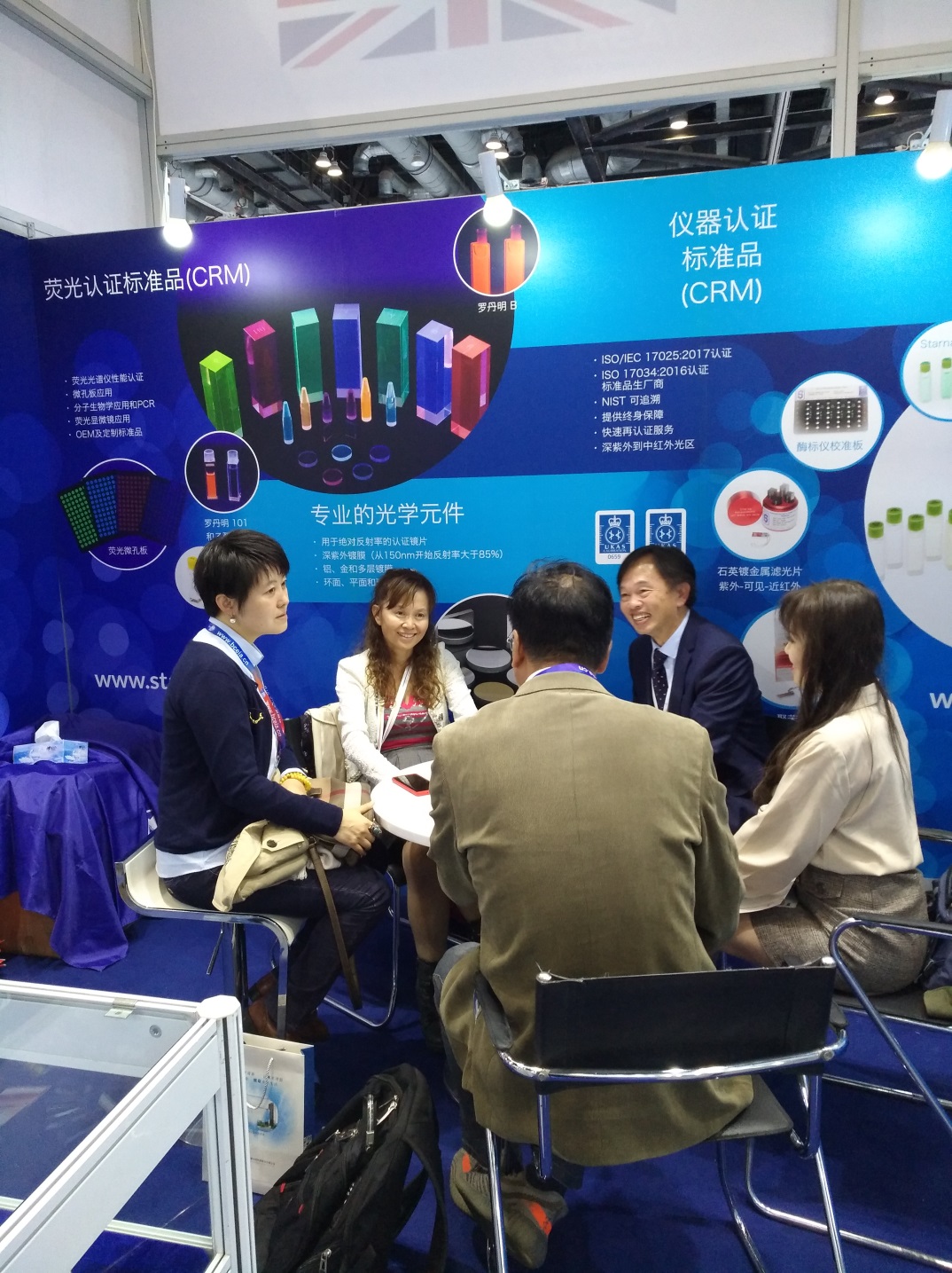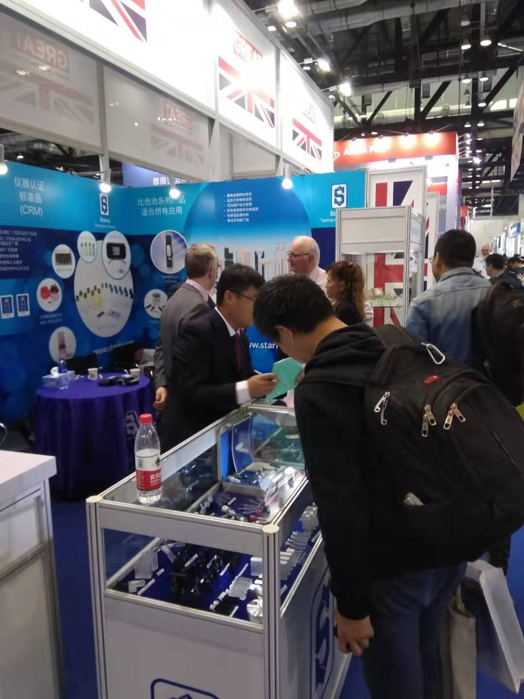 此次展會上英國Starna的比色池系列產(chǎn)品及光譜儀校準(zhǔn)用標(biāo)準(zhǔn)物質(zhì)系列產(chǎn)品引起了國內(nèi)外各行業(yè)用戶以及知名儀器制造商的廣泛關(guān)注,現(xiàn)場反響十分熱烈。國際知名儀器制造商如Shimadzu,ThermoFisher,Agilent,Ocean Optics,Mettler Toledo,Molecular Devices, HORIBA, PerkinElmer等,都紛紛到Starna展臺咨詢相關(guān)的最新產(chǎn)品信息。同時,國內(nèi)知名的儀器制造商如寶德、吉天、普析通用、上海伍豐等,也紛紛到場咨詢比色池系列產(chǎn)品。