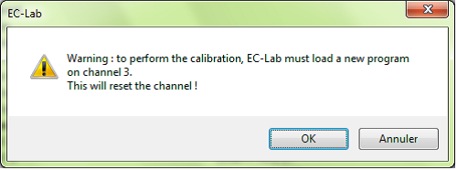 1. EC-Lab軟件中,Tools→channel calibration,出現(xiàn)下面的對(duì)話(huà)框,選Yes。