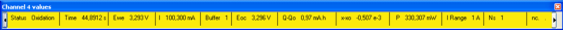 狀態(tài)欄底色出現黃色,一般代表此時實驗測試的過程為氧化過程,或者為充電過程。比如CV測試中,氧化反應階段,軟件狀態(tài)欄就顯示黃色;或者GCPL過程中,充電過程狀態(tài)欄也顯示為黃色。
