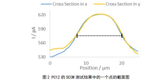 在所有的SECM測(cè)試中,氧化還原介質(zhì)都非常重要。所以探針測(cè)試微米級(jí)范圍時(shí),選擇恰當(dāng)?shù)难趸€原介質(zhì)非常必要。由于采用微米尺寸的電極測(cè)試低電流特征,電極污染對(duì)實(shí)驗(yàn)結(jié)果的影響非常明顯,這也是選擇氧化還原介質(zhì)需要考慮的重要因素之一。在本文實(shí)驗(yàn)中,只采用了K3[Fe(CN6)],而沒(méi)有采用含K4[Fe(CN6)]的混合物,因?yàn)檫@可以降低電極的污染。探針的污染會(huì)使測(cè)試電流降低。降低探針的污染,就可以進(jìn)行更大范圍的測(cè)試。選擇氧化還原介質(zhì)時(shí),需要考慮的另一個(gè)因素是其擴(kuò)散系數(shù)D。探針測(cè)試的電流與擴(kuò)散系數(shù)有直接關(guān)系,低擴(kuò)散系數(shù)的介質(zhì)會(huì)降低測(cè)試電流。所以用戶在選擇氧化還原介質(zhì)之前要對(duì)標(biāo)準(zhǔn)氧化還原介質(zhì)或者文獻(xiàn)里使用的氧化還原介質(zhì)進(jìn)行測(cè)試,這將改進(jìn)用戶的實(shí)驗(yàn)測(cè)試結(jié)果。Scanning Electrochemical Microscopy一書(shū)的第一章中列出了可選的介質(zhì)[3]。