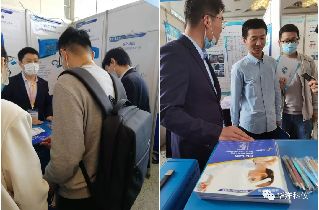 華洋科儀在本次研討會中展示了BioLogic的VMP3多通道電化學(xué)工作站、SP-150電化學(xué)工作站等電化學(xué)測試儀器,其中,全球銷量第一的多通道電化學(xué)工作站VMP3,其模塊化的主機(jī)具有極強(qiáng)的擴(kuò)展功能,用戶可以輕松配置1-16通道阻抗測試模塊,安裝低電流模塊以及外置大電流模塊等,任意兩個通道即可組建雙恒電位儀,可用于電催化領(lǐng)域的RRDE研究。此次大會,多位與會電催化電合成專家學(xué)者們也止步華洋科儀展臺,并對BioLogic電化學(xué)系列產(chǎn)品予以認(rèn)可與贊賞。