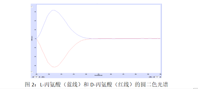 首先測量純對映體的圓二色光譜,以檢查樣品制備的質(zhì)量和測量的圓二色譜信號的完整性。L-丙氨酸和D-丙氨酸的光譜如圖2所示。