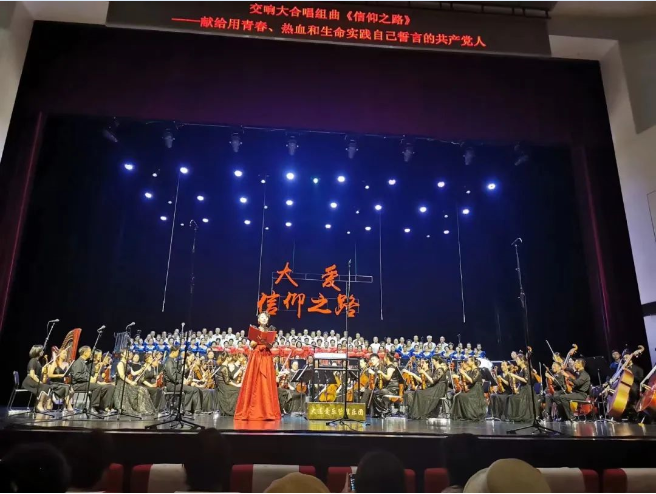 大連愛樂管弦樂團《大愛·信仰之路》交響組歌于2022年7月28日19點在大連國際會議中心大劇院隆重舉行。交響組歌《大愛·信仰之路》是作曲家鄭冰為建黨百年慶典而作的大型合唱作品,作品包括序曲《共產(chǎn)黨宣言》《忠魂頌》《沁園春·雪》《江姐遺書》《人民英雄紀念碑碑文》《我是中國人民的兒子》、尾聲《信仰之路》等共計14個樂章?!洞髳邸ば叛鲋贰费莩鐾瑫r錄制唱片和視盤,此舉是大連乃至全國首部非職業(yè)樂團與合唱團錄制的唱片。