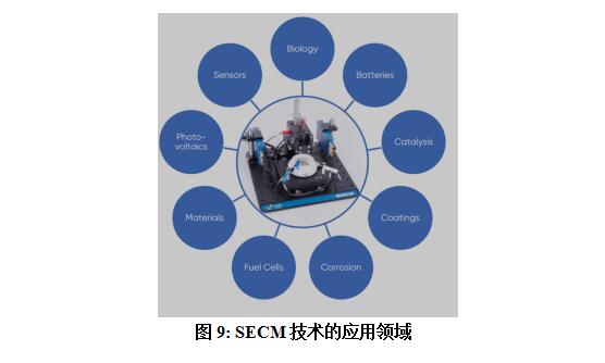 SECM可用于任何由宏觀電化學測量的系統(tǒng),其中局部電化學特性是有意義的,圖9為一些已使用SECM的領(lǐng)域。由于其廣泛的適用性,SECM已被廣泛應(yīng)用于很多領(lǐng)域,包括: