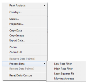可以通過在感興趣的數(shù)據(jù)窗口右擊,查看可用的分析菜單。這些工具的目的不是提供額外的數(shù)據(jù),而是幫助用戶在那些獲得的參數(shù)不夠優(yōu)化的實驗結(jié)果中改善和加強數(shù)據(jù)呈現(xiàn)的方式,或者去掉實驗過程中的一些人為因素的影響。
