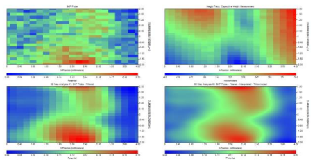 另一個可用的模板顯示一個面掃描結(jié)果和四個不同的線掃描結(jié)果。這個模板專門用于2D快速傅里葉變換(FFT)分析。由于3D圖顯示沿x和y軸的數(shù)據(jù),FFT可以用來確定某些特征的空間頻率。